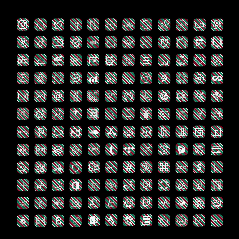 When you buy this product, you will receive a word document with the instructions on how to install the app icons, and the photo of every single one of the app icons. These are 3 whole app icon sets: a red and black checkered one, a green one, and a red and green striped one. Each set contains 144 app icons.